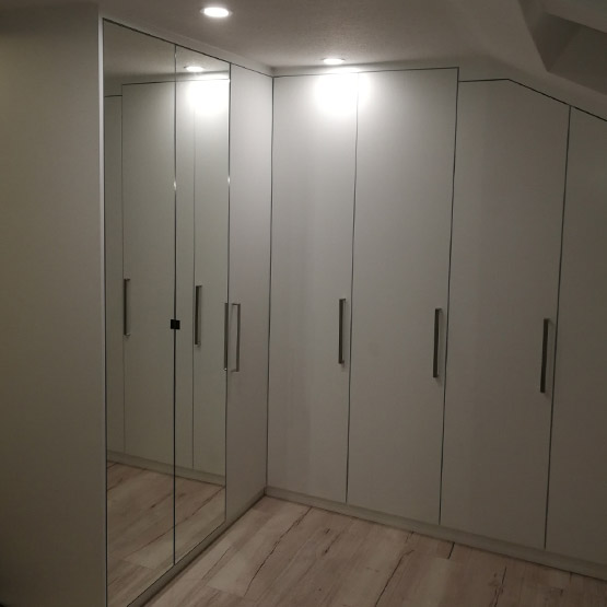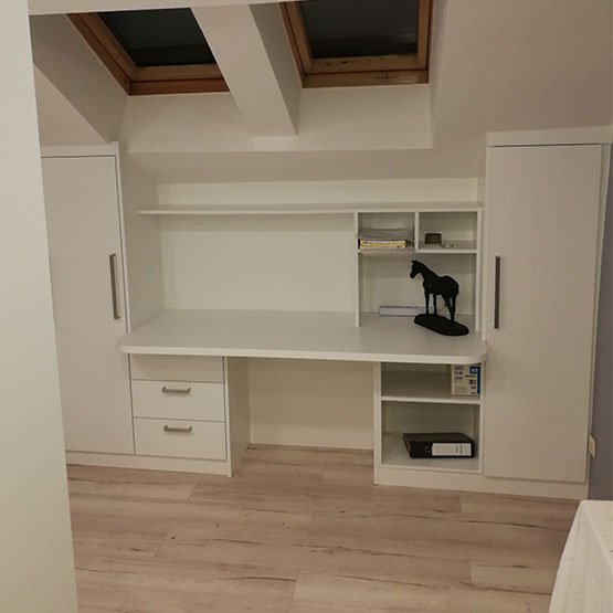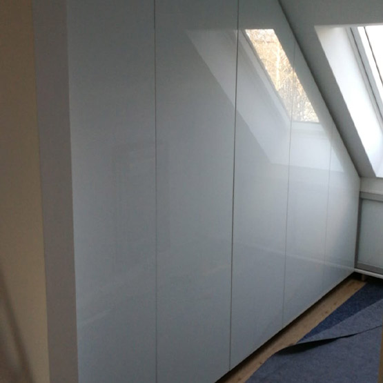 Gerade Dachschrägen stellen oft eine Platztechnische und vom Design her große Herausforderung dar. Es ist umso wichtiger hierfür einen perfekt ausgemessenen Schrank planen zu lassen. Unsere Schränke passen wir an ihre Schräge nach Maß und Winkel genau an. Ob eine Schiebetür möglich ist, hängt von der Schräge ab. Wir beraten Sie gerne bei Ihnen vor Ort und besprechen mit Ihnen eine geeignete Lösung.